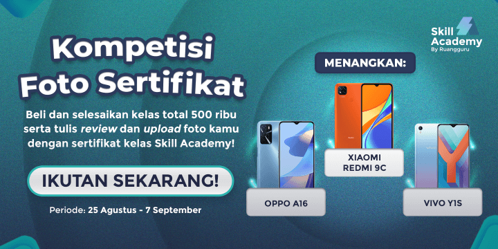 Anda dapat mengikuti Kompetisi Foto Sertifikat Skill Academy (“Kompetisi”) dengan melakukan pembelian kelas pada Platform Skill Academy (“Kelas”), dengan syarat dan ketentuan sebagai berikut: